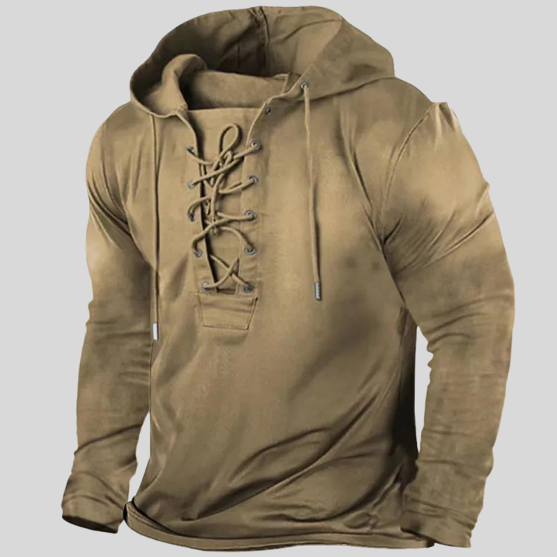 Men’s Long-Sleeve Shirt – Relaxed Fit – Rugged Cotton – Lace-Up Neck – Button Pockets by Couture-Moda offers a relaxed fit and rugged cotton feel. This long-sleeve shirt features a unique lace-up neck and functional button pockets, perfect for casual wear.