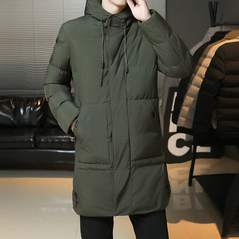Windproof Quilted Hooded Long Fit Jacket. Stay warm and dry in this Couture-Moda long fit, quilted, hooded jacket. Perfect for battling the elements, this windproof and water-resistant jacket provides ultimate comfort and protection.