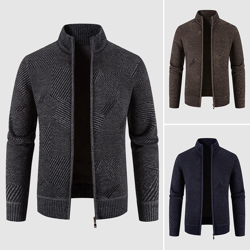 This men's geometric thick knit cardigan jacket is the perfect blend of warmth and fashion-forward design. Crafted from a soft, thick knit fabric, it features a unique geometric pattern that adds a contemporary touch to your wardrobe. The open-front style allows for easy layering over shirts or t-shirts, making it ideal for chilly days. With its relaxed fit and cozy feel, this cardigan is perfect for casual outings or lounging at home while still looking stylish.