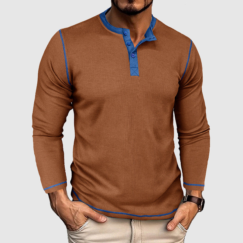 This men's vintage waffle long sleeve t-shirt combines comfort and style for a perfect addition to your wardrobe. Made from soft, textured waffle fabric, it provides warmth without compromising breathability. The relaxed fit and classic design make it easy to layer or wear on its own for a laid-back, vintage-inspired look. Ideal for casual outings or lounging at home, this t-shirt pairs effortlessly with jeans or chinos for a timeless ensemble.