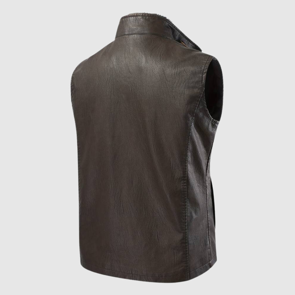 Add a touch of vintage flair to your wardrobe with this stylish leather vest!