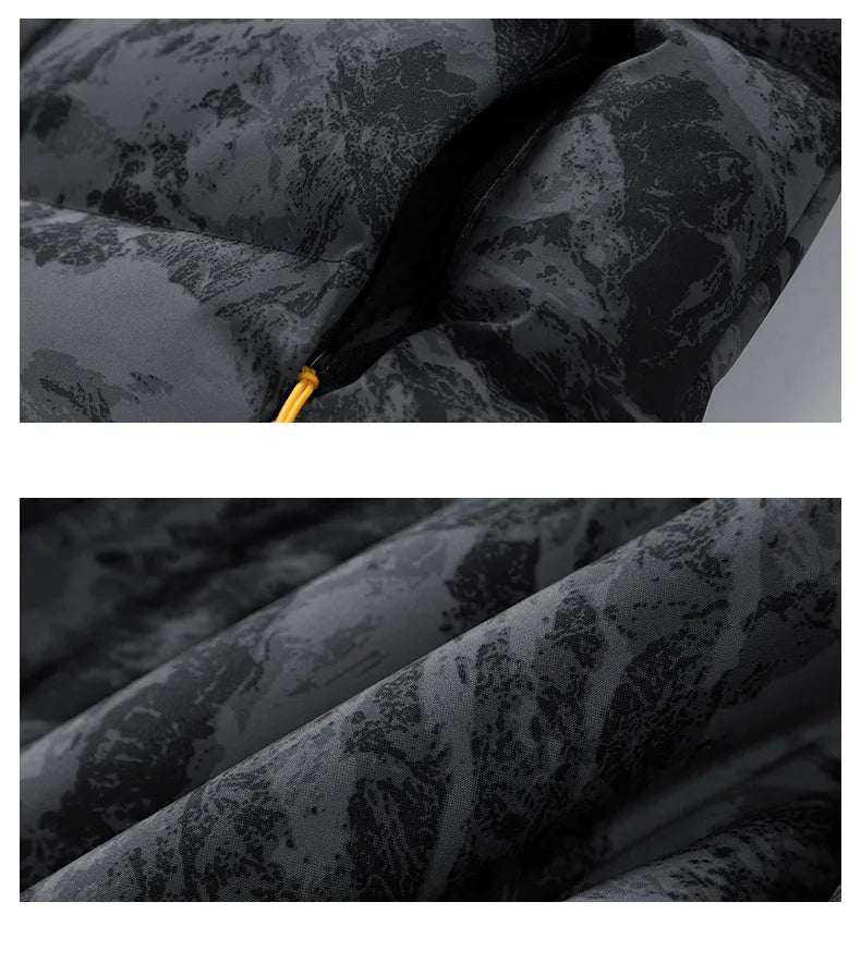 This men's winter camouflage hooded jacket is designed for the adventurer who values both style and functionality. Made from durable, insulated fabric, this jacket provides exceptional warmth and protection against the cold. The camouflage pattern adds a rugged, outdoorsy touch, while the adjustable hood and cuffs ensure a snug fit against chilly winds. Perfect for outdoor activities, camping trips, or casual outings, this jacket is a versatile piece that enhances any winter wardrobe.