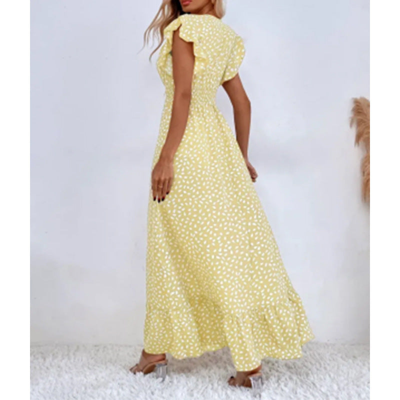 Float into summer with our Women's Maxi Dress - Polka Dot Pattern - V-Neck - Ruffle Short Sleeves - Flowy Fit. This breezy maxi boasts a flattering V-neck, playful polka dots, and charming ruffle sleeves. Its flowy silhouette ensures all-day comfort and effortless style for any occasion.