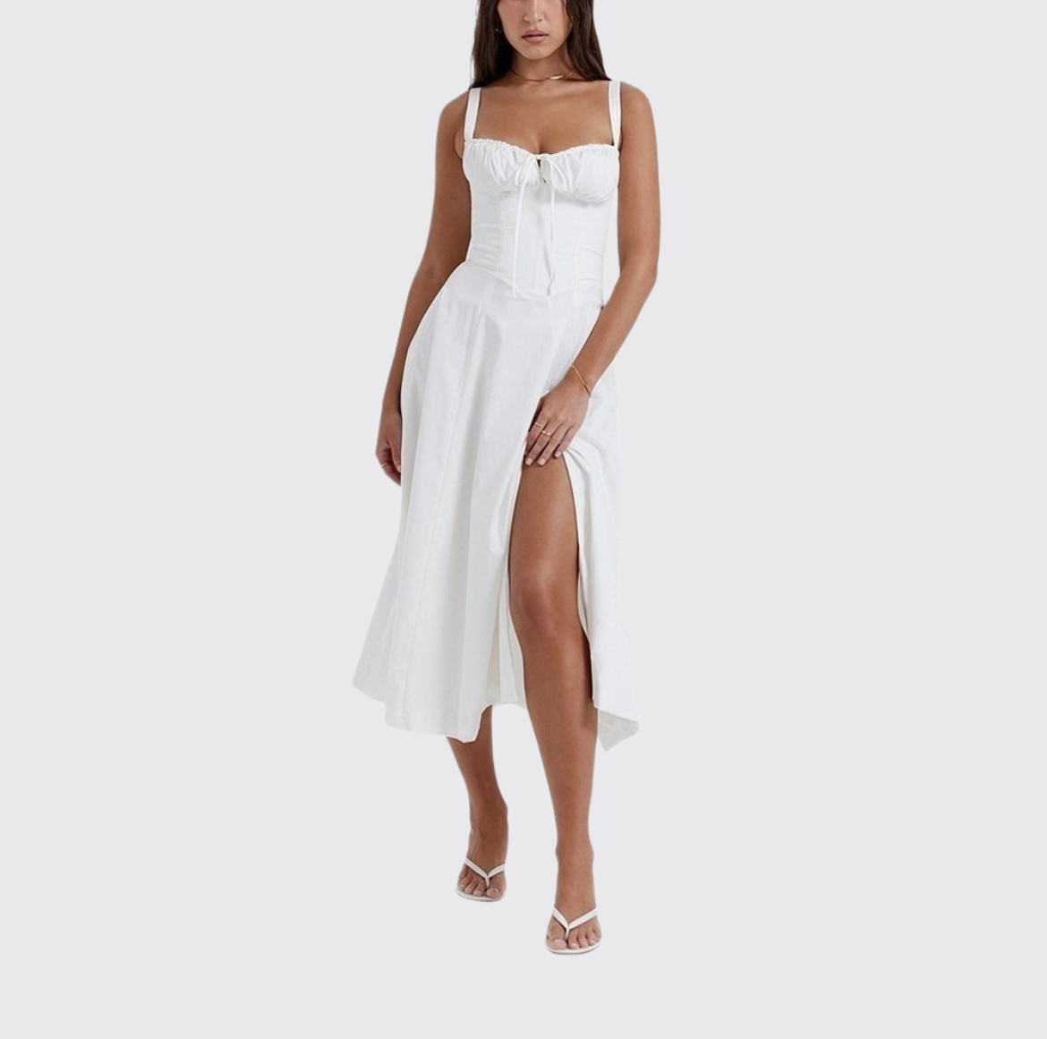 Pair this dress with sandals and a straw hat for a sunny day out, or dress it up with heels for an evening event.