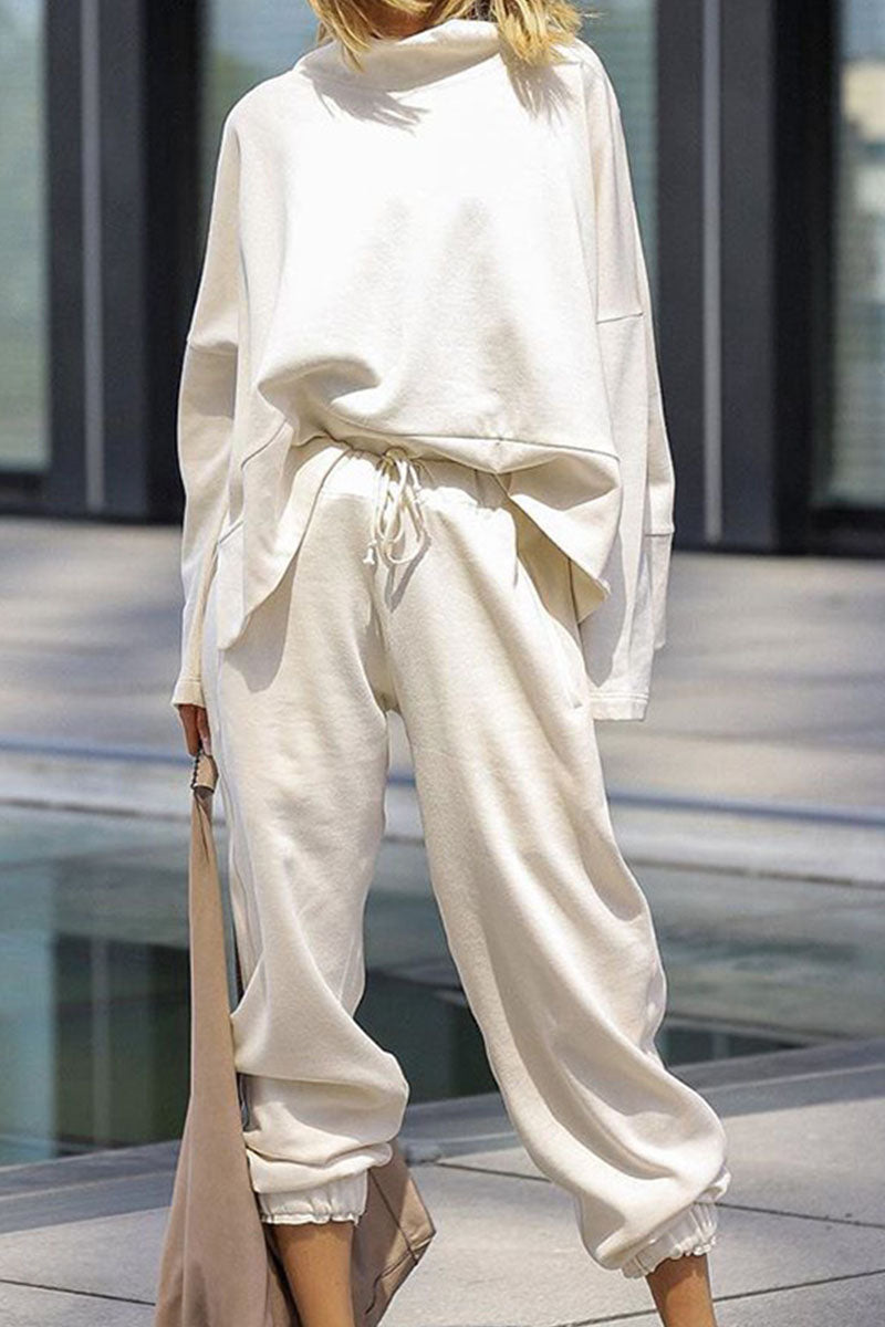 Women's Loungewear Set - Oversized Sweatshirt & Elastic Waist Trousers - Soft Cotton