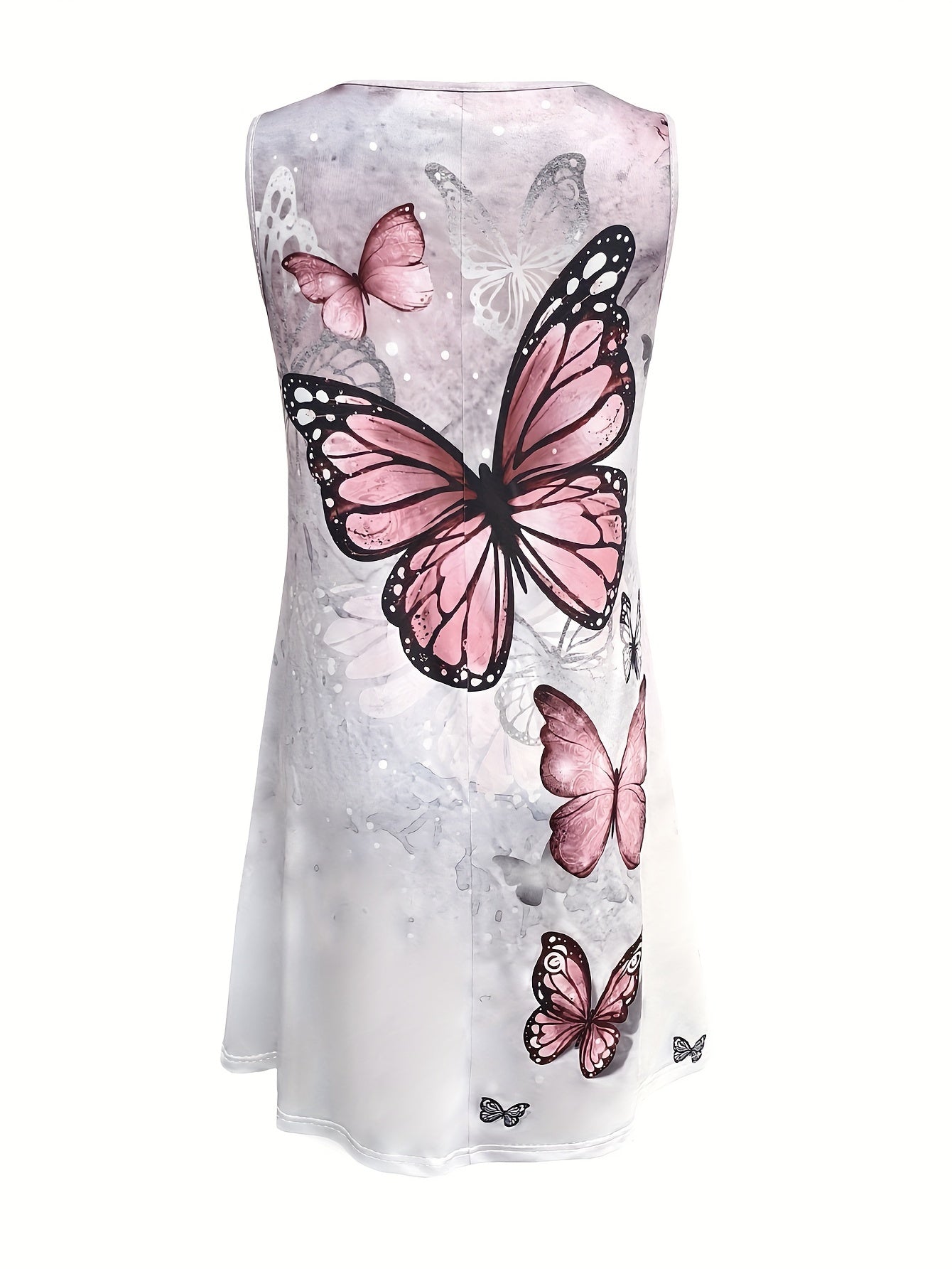 Design: Sleeveless dress with round neck and butterfly print