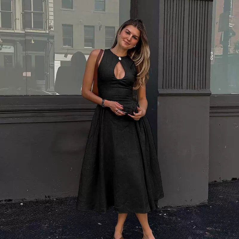 Discover effortless style with our Women's Midi Dress - Sleeveless A-Line Fit, featuring a chic keyhole neckline and lightweight flared skirt. Perfect for any occasion, this dress offers a flattering silhouette and comfortable wear, making it a wardrobe essential.