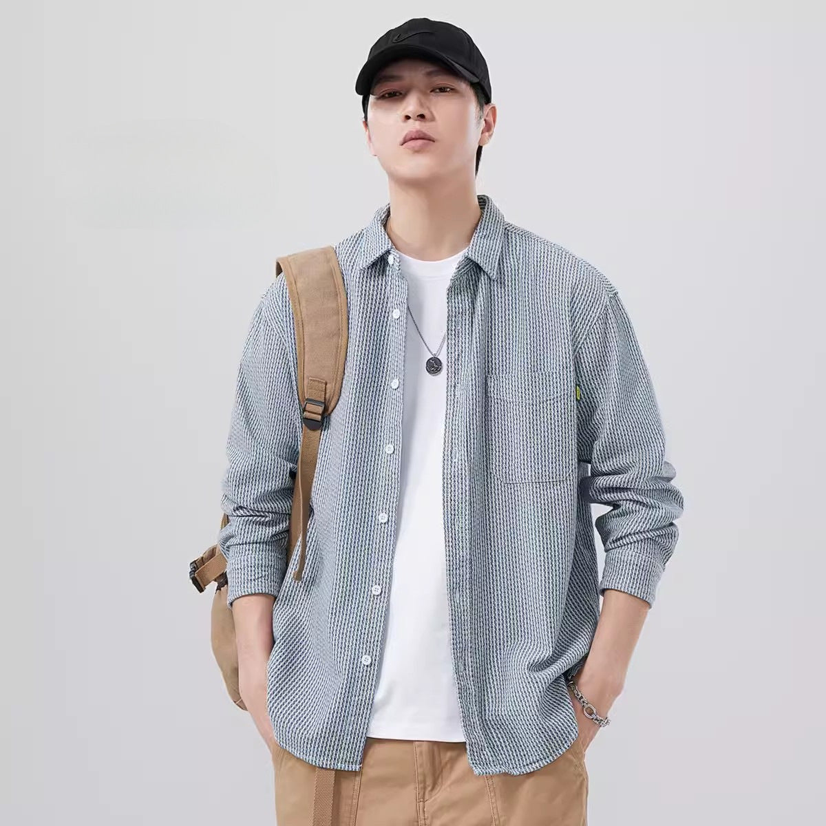 Men’s Long Sleeve Shirt – Loose Fit – Breathable Cotton – Button-Down Casual Style by Couture-Moda. Experience ultimate comfort with this breathable cotton, loose-fit shirt. Perfect for casual occasions, featuring a button-down style and a chest pocket. A versatile addition to your wardrobe!