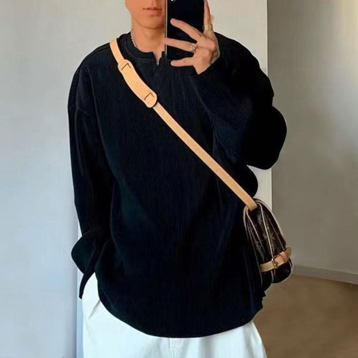 Ribbed Knit Relaxed Fit Long Sleeve T-Shirt
