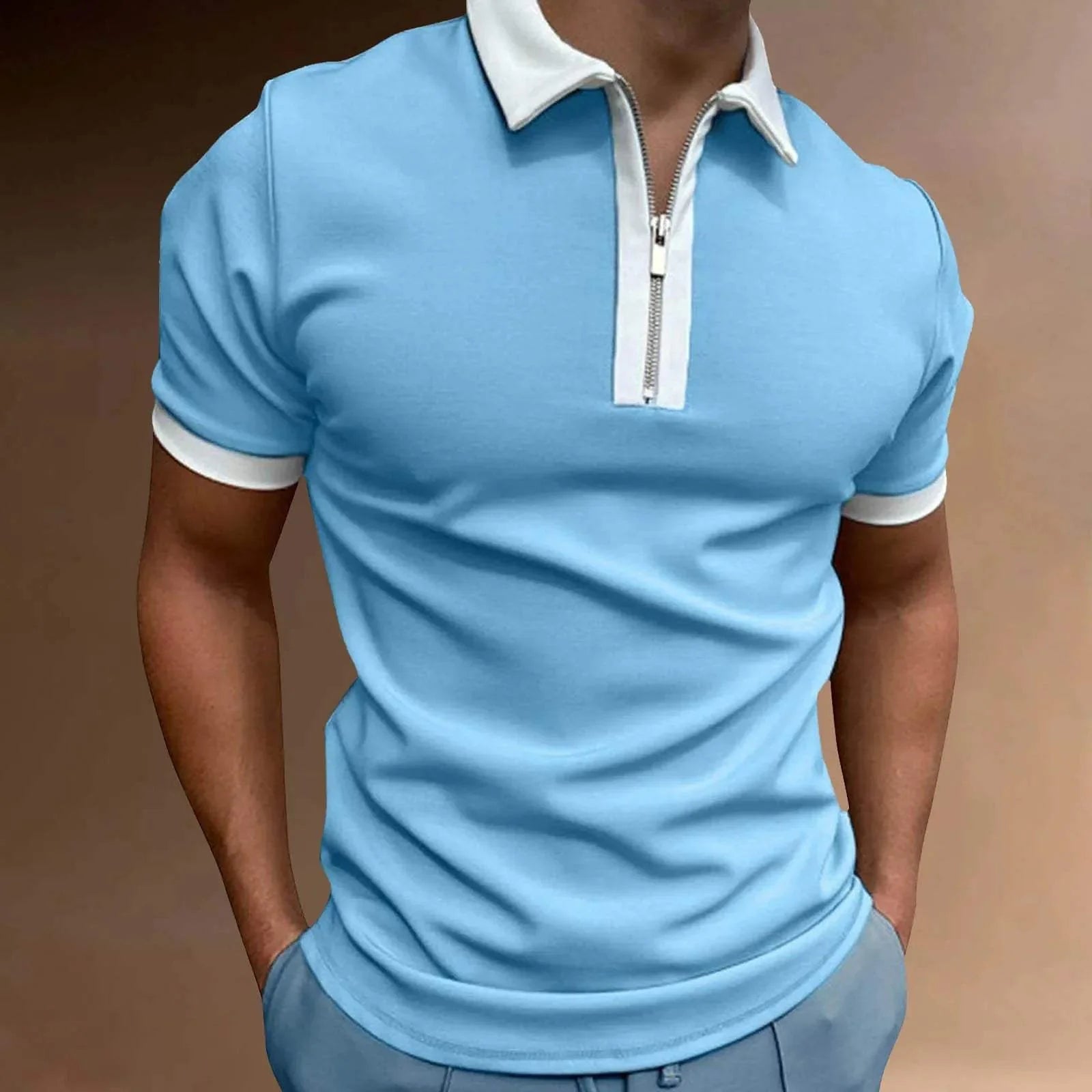 Elevate your smart-casual style with this Men’s Polo Shirt - Zip-Up Collar - Stretch Fabric - Short Sleeve Smart Casual by Couture-Moda. Experience ultimate comfort and flexibility with its soft, stretch fabric and modern zip-up design. Perfect for any occasion, this polo shirt offers a polished and contemporary look.