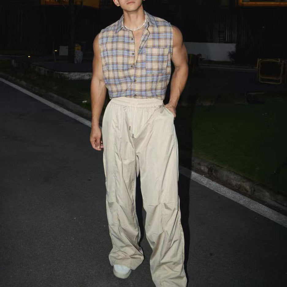 Lightweight Plaid Loose Fit Sleeveless Shirt