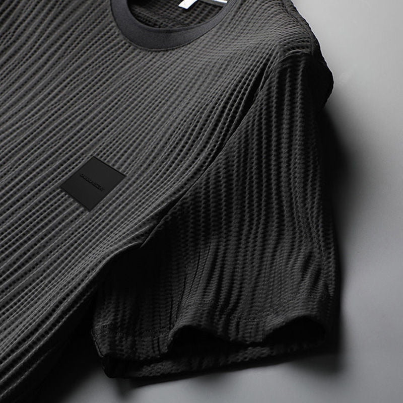 Men’s Tracksuit Set - Textured Pleated Fabric - Short Sleeve T-Shirt & Joggers - Relaxed Fit