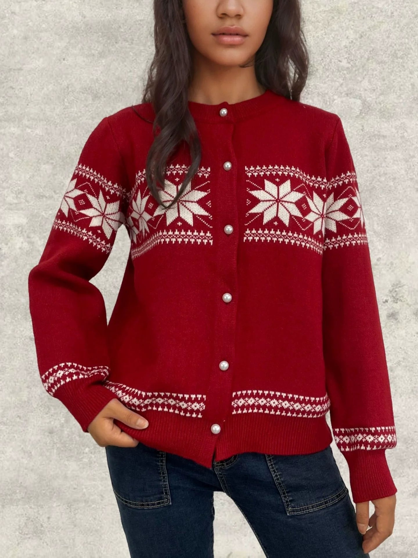 Snowflake Pattern Wool Knit Cardigan Sweater