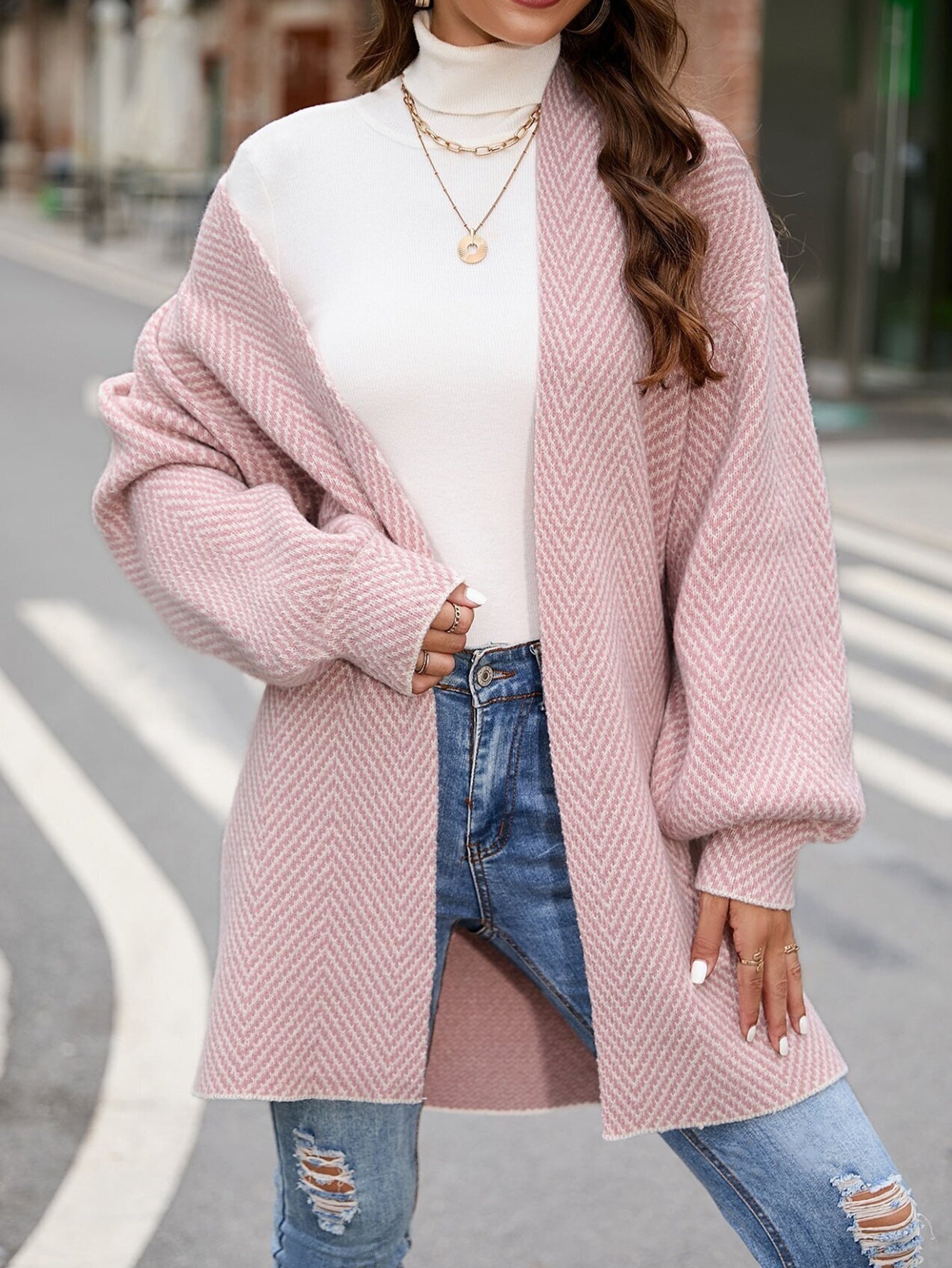 Herringbone Pattern Relaxed Fit Knit Cardigan