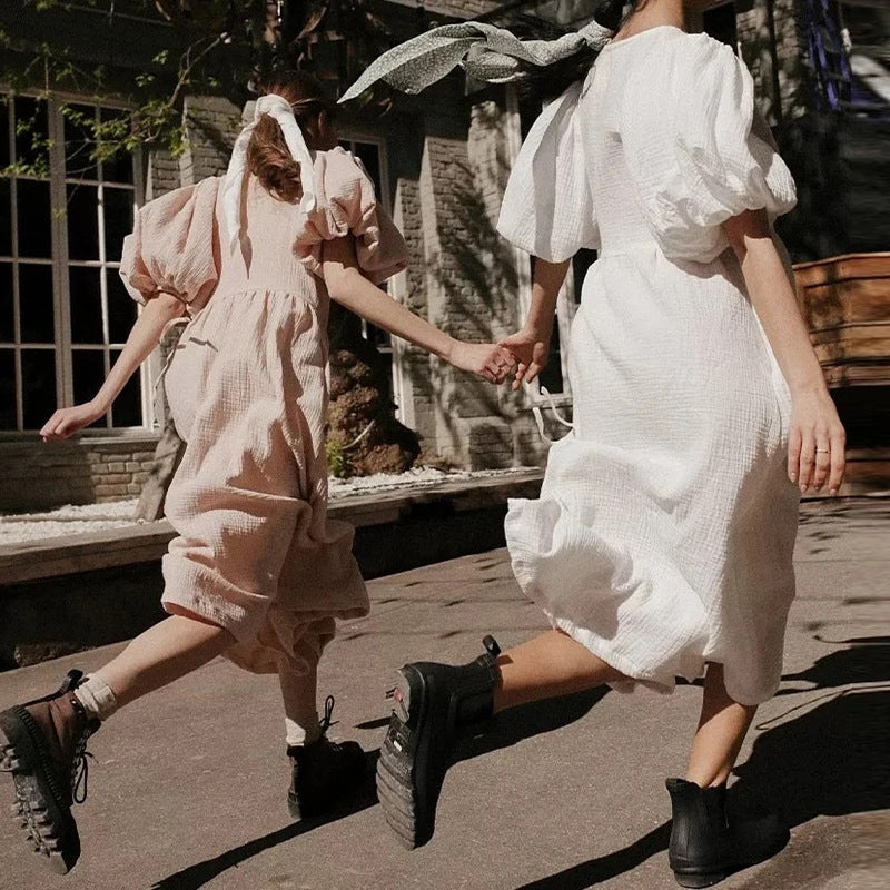 Women’s Long Dress – V-Neck – Puff Sleeve – Soft Textured – Midi Length – Relaxed Fit by Couture-Moda. Experience effortless style with this flowy and elegant midi dress. Featuring a flattering V-neck and chic puff sleeves, its soft textured fabric and relaxed fit ensure all-day comfort. Perfect for any occasion.