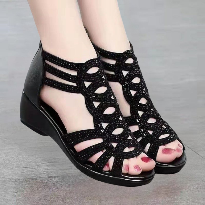 Women’s Mid-Heel Sandals – Rhinestone Embellished – Gladiator Cut-Out – Ankle Strap from Couture-Moda are the perfect blend of chic and comfortable. These stylish sandals feature a gladiator-inspired cut-out design, sparkling rhinestone embellishments, and a secure ankle strap, making them ideal for any occasion.
