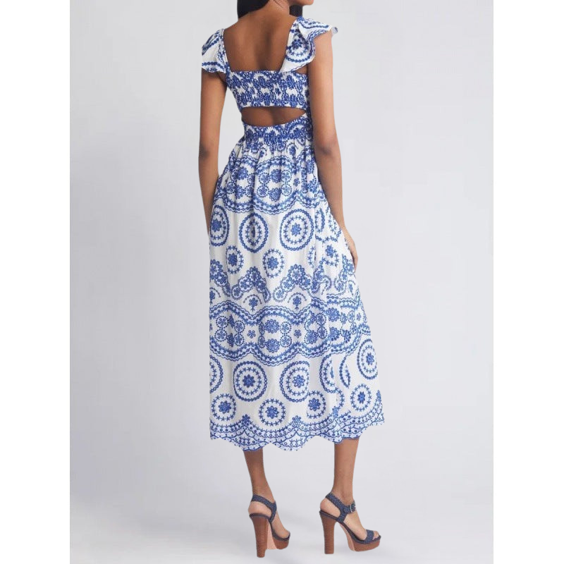 Lightweight Cotton Ruffle Sleeve Midi Dress