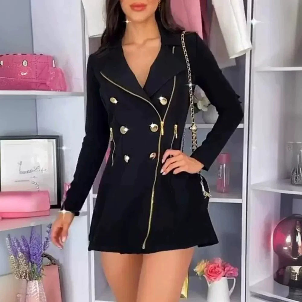 Asymmetric Zipper Detail Slim Fit Suit Dress by Couture-Moda: This chic women's suit dress features a slim fit, blazer-inspired design, and a modern asymmetric zipper. Perfect for a polished yet edgy look, this long-sleeve dress is a versatile addition to your wardrobe.