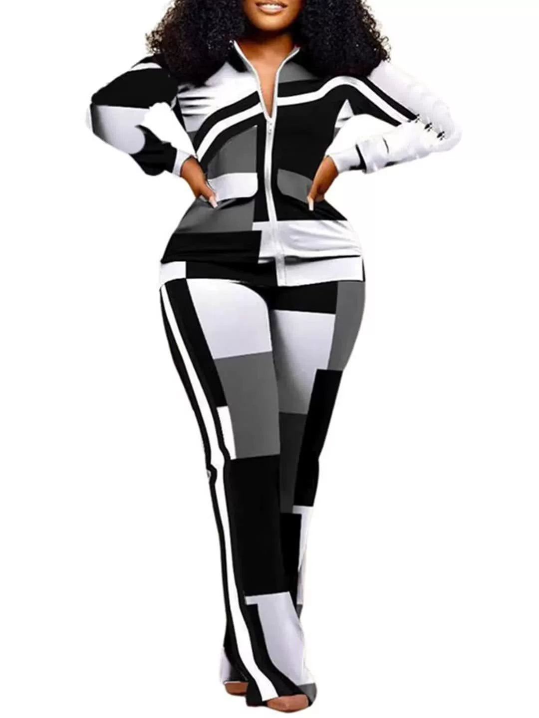 Animal Print Slim Fit Two-Piece Trousers Suit
