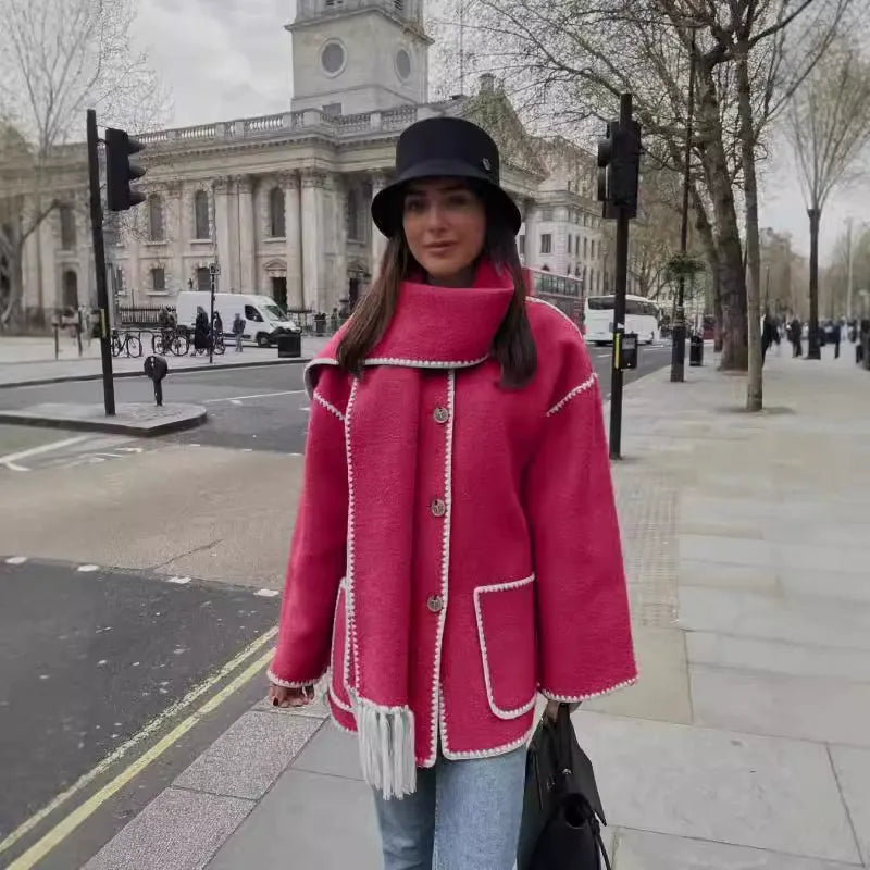 Drape the matching scarf for a coordinated look, or pair with boots for a chic and warm ensemble. Add a belt to cinch the waist for a more defined silhouette.